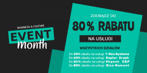 Od dzisiaj do końca kwietnia Event łącz rabaty, zamawiając usługi w odpowiednich działach. Na start otrzymujesz rabat w wysokości 10% na jedną usługę i 20% na więcej niż jedną usługę …